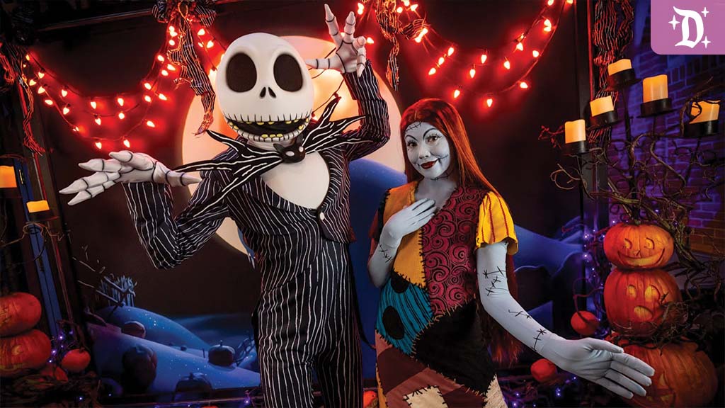 Guests may find Jack Skellington and Sally from Tim Burton’s The Nightmare Before Christmas greeting guests and wishing them “season’s screamings” in New Orleans Square at Disneyland.
