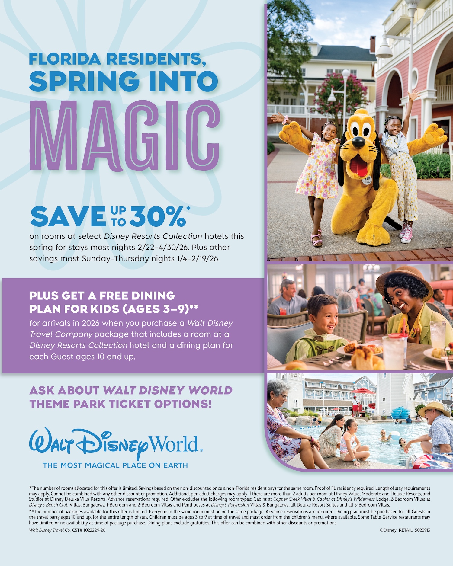 Florida Residents: Save 20% to 30% on Rooms at Walt Disney World in 2026